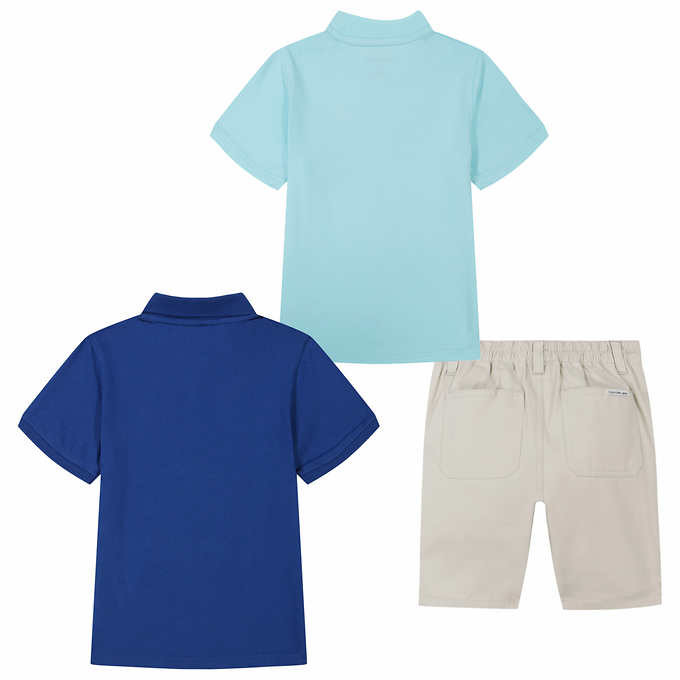 как выглядит Calvin Klein Boys 3 Piece Top and Short Pants Set Size 2T - Aqua Blue Beige фото