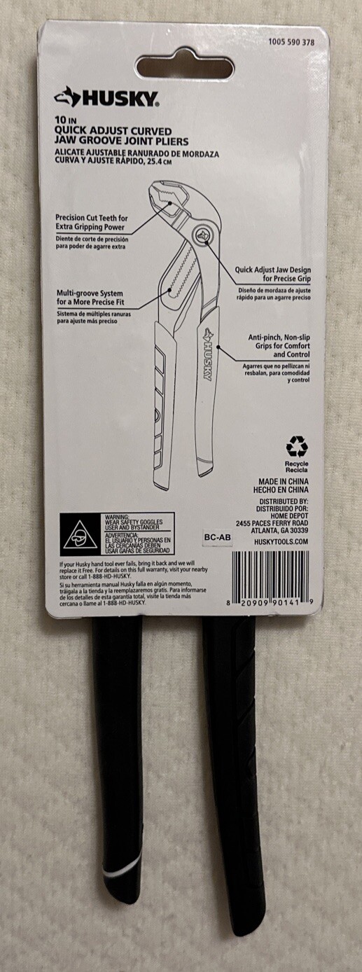 Husky 10 in. Quick Adjust Curved Jaw Groove Joint Pliers 1005 590 378 NIP