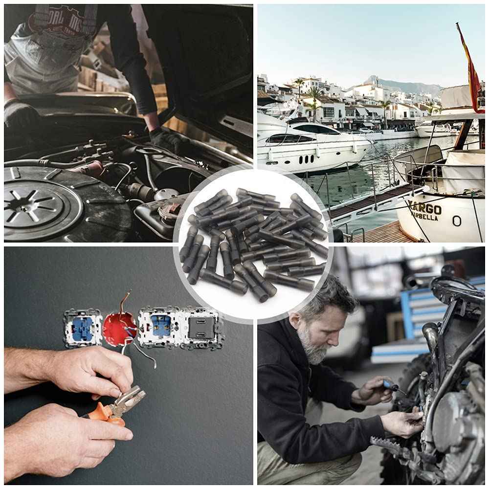 50PCS Heat Shrink Butt Wire Connectors Crimp Terminals Black AWG 14-12 Gauge US