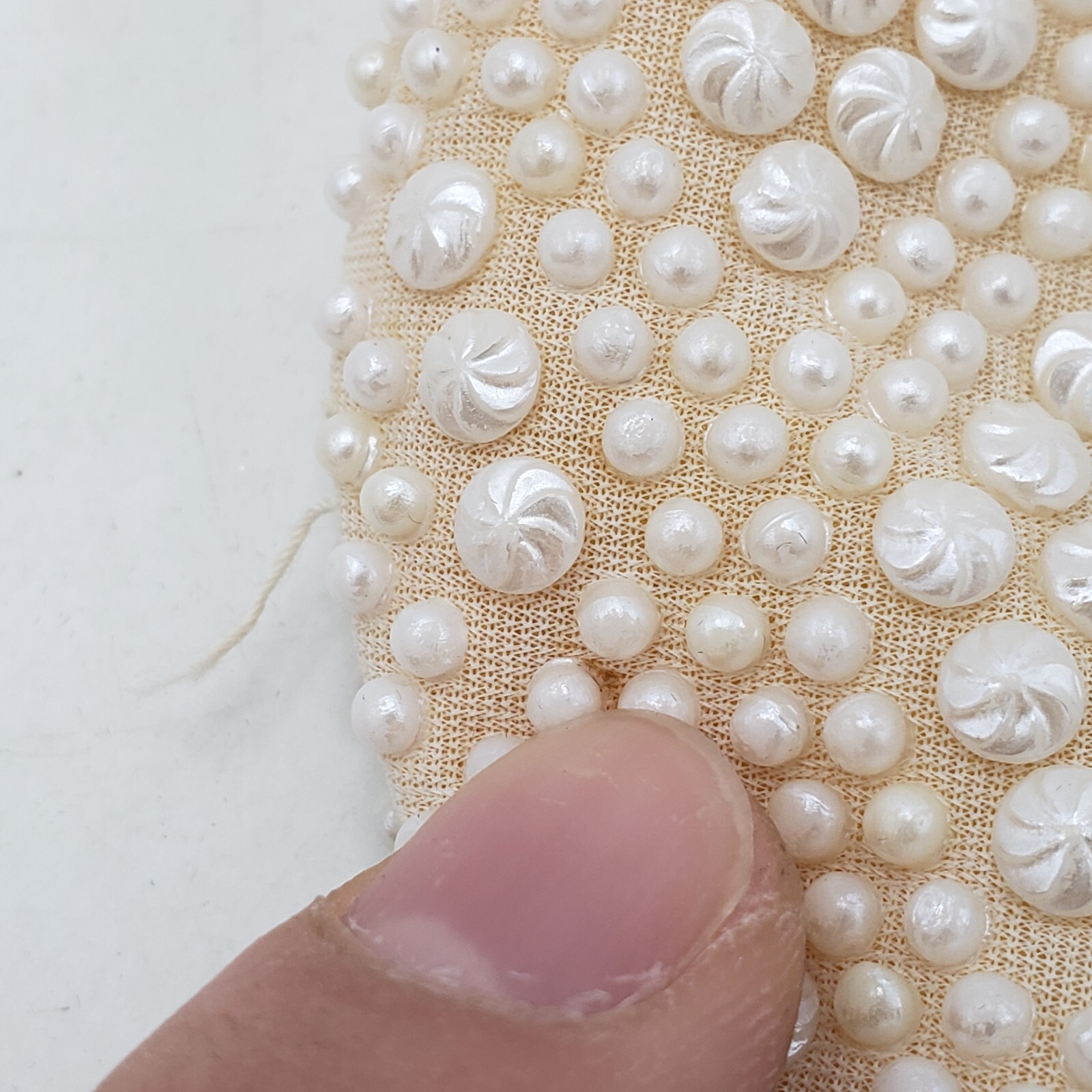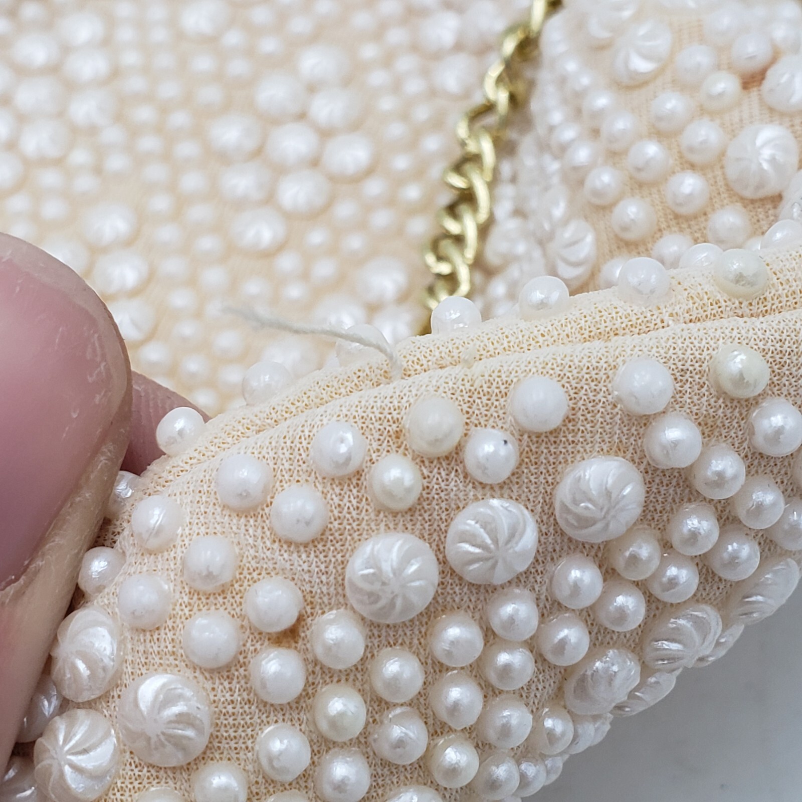 как выглядит Vintage Faux Pearl White Purse w/ Metal Closure Diamond Pattern Hong Kong фото