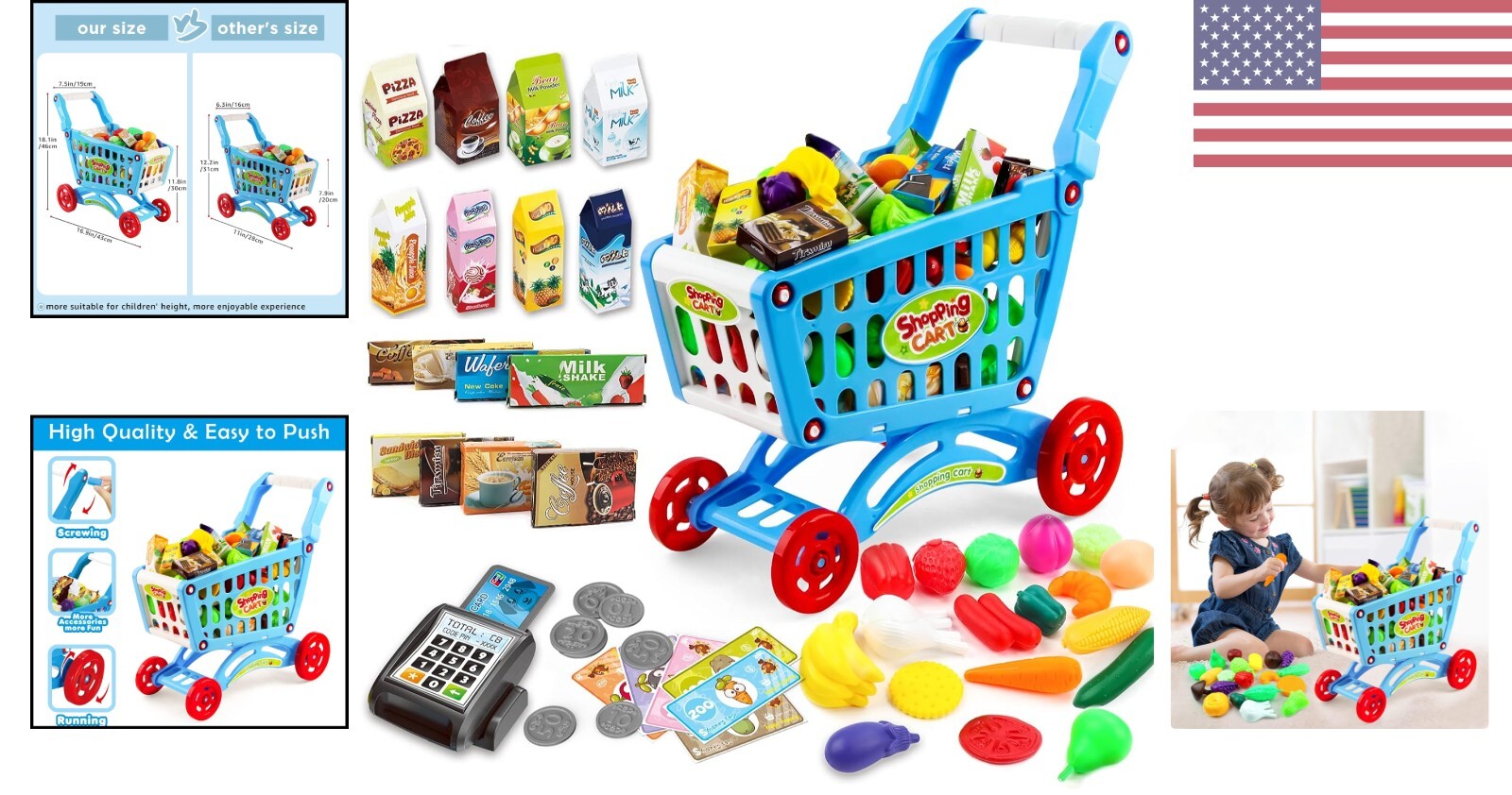 как выглядит Kids Shopping Cart Play Set - Includes Fruit, Vegetables Shop Accessories фото
