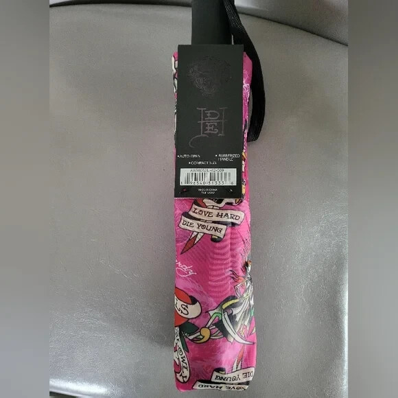 NWT Ed Hardy Auto Open Compact Umbrella Love Kills Slowly Pink Skull Snake Rose