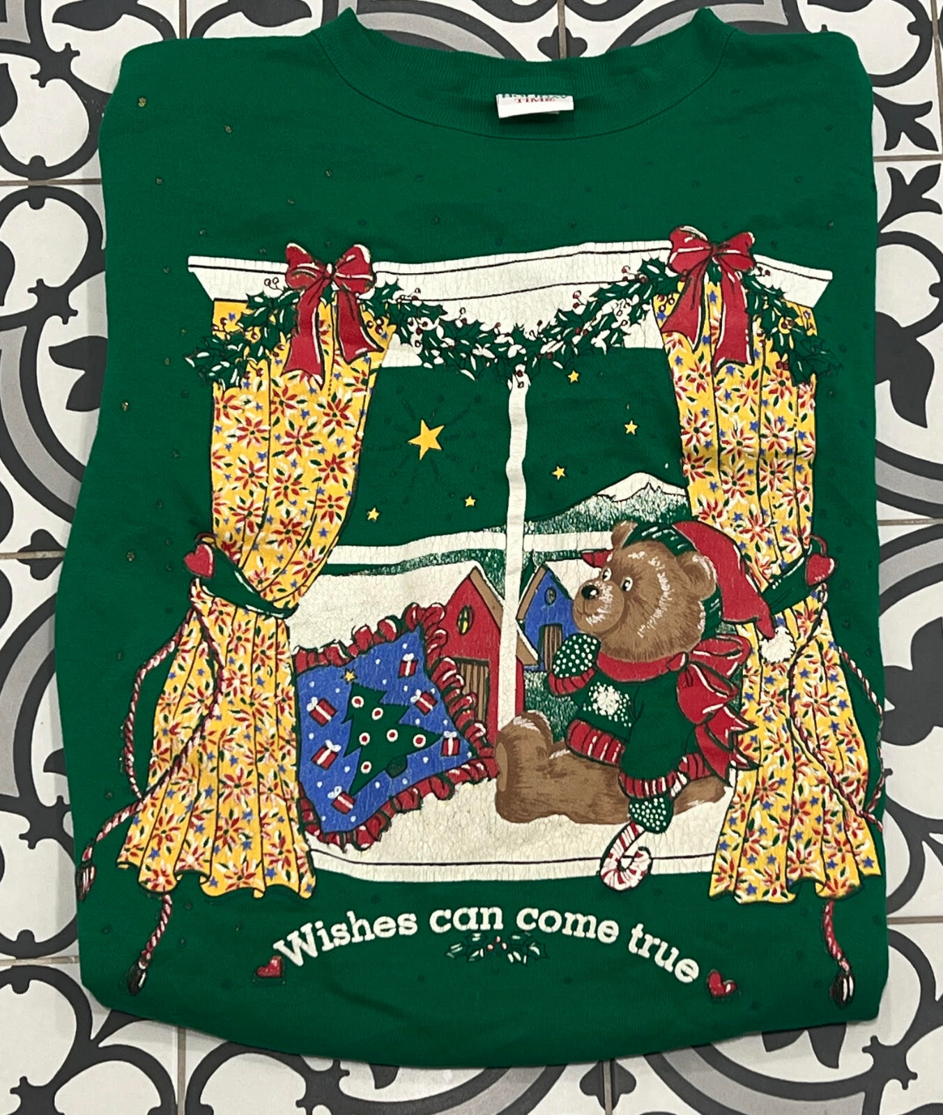 Vintage Teddy Bear Holiday Time Ugly Sweater Party 1980s Sweatshirt Large