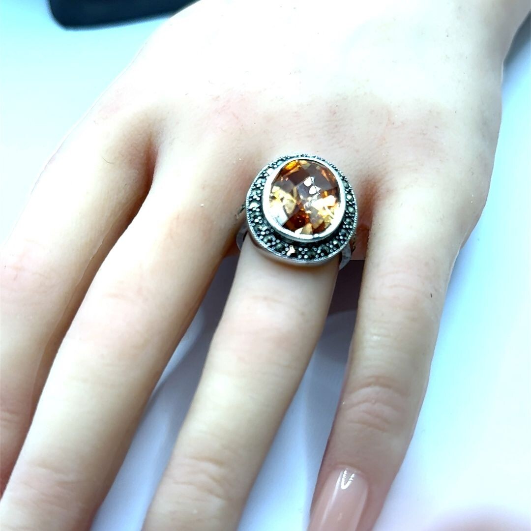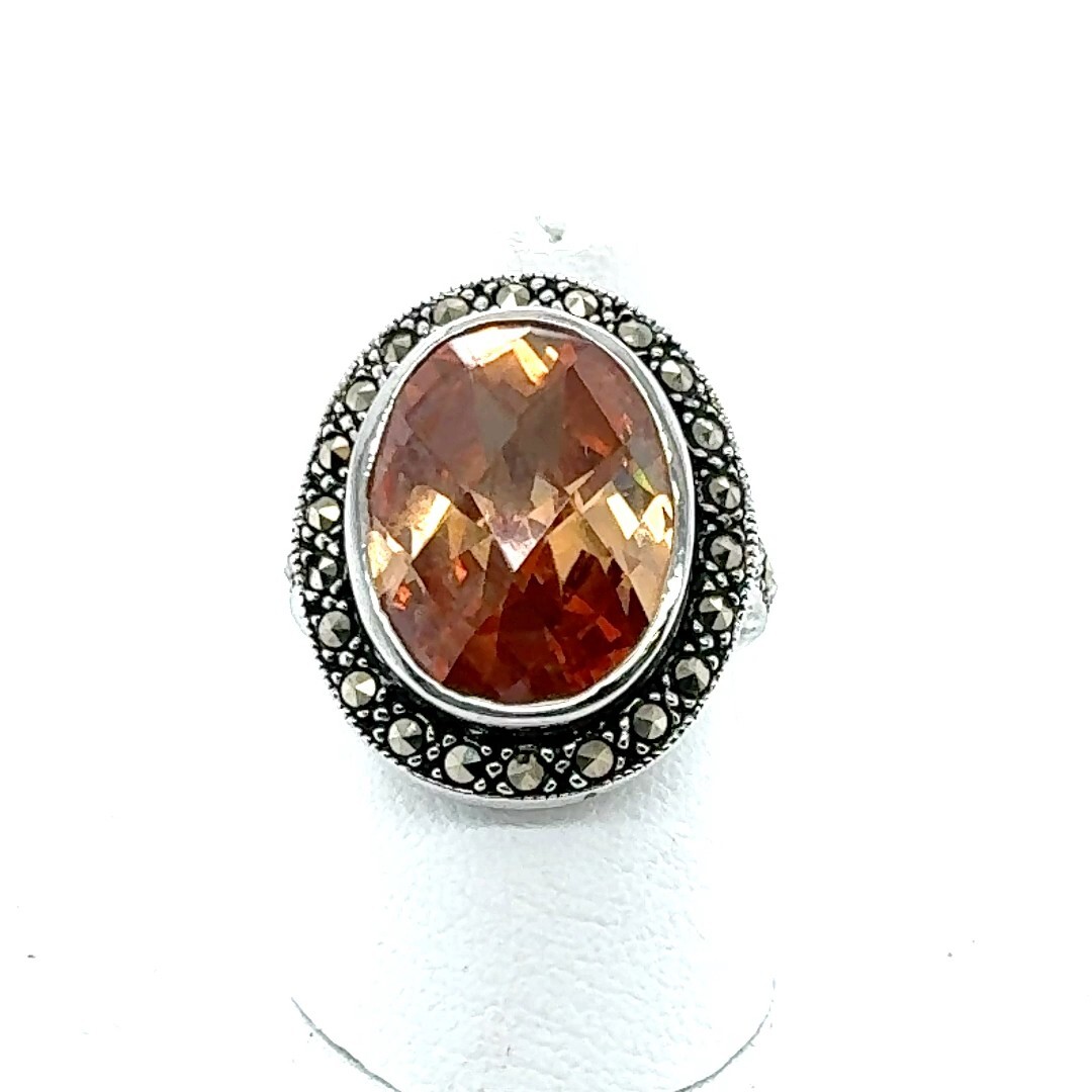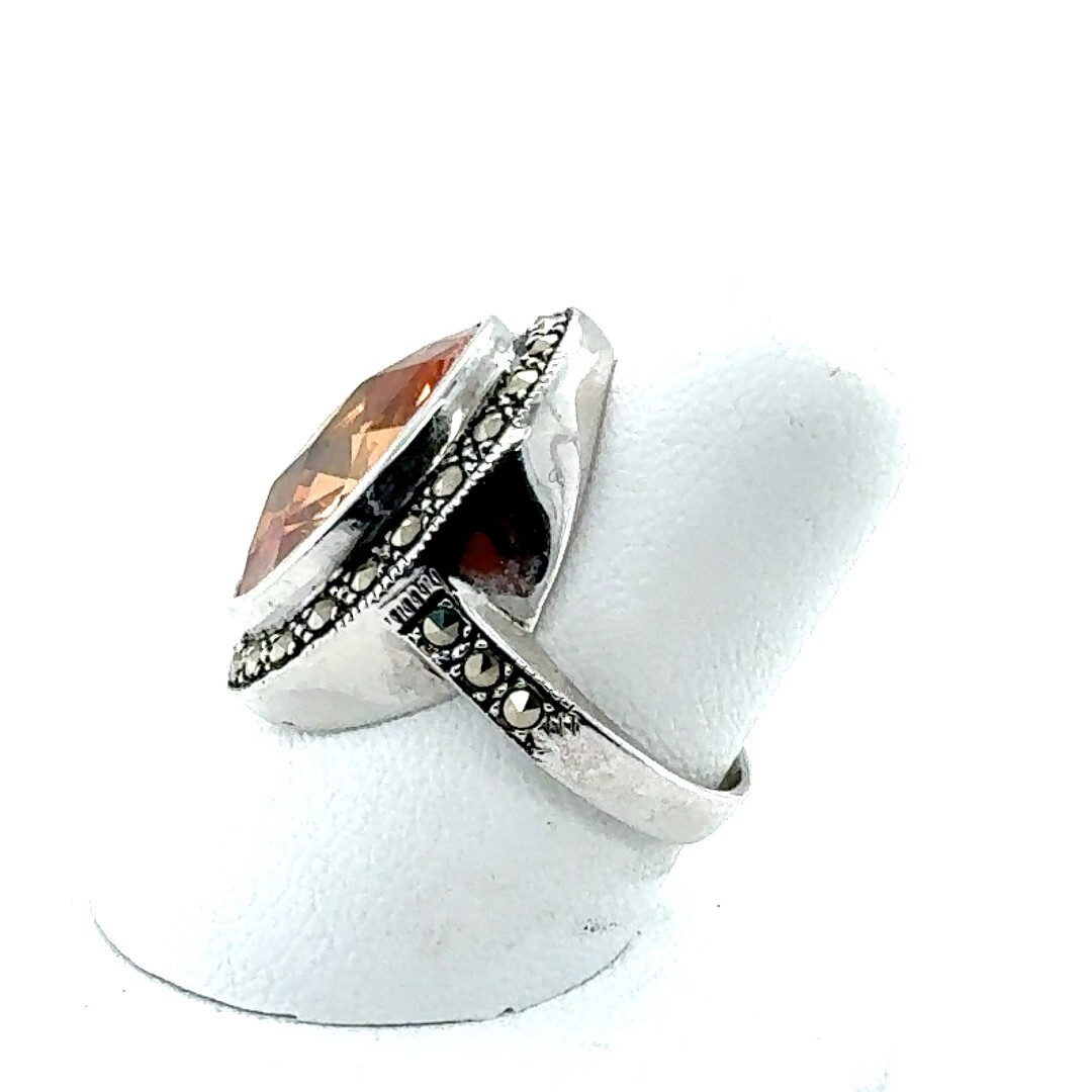 как выглядит Sterling Silver Faux Topaz and Marcasite Ring - Size 6.5 фото