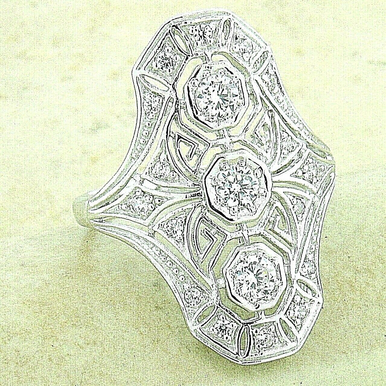 как выглядит ART DECO STYLE CUBIC ZIRCONIA 925 STERLING SILVER ANTIQUE STYLE RING  1149 фото
