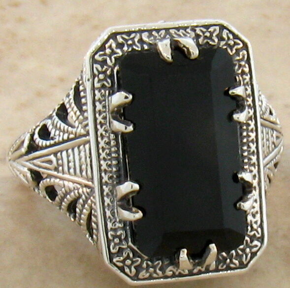 как выглядит BLACK AGATE 925 SOLID STERLING SILVER DECO ANTIQUE STYLE RING SIZE 8  765 фото