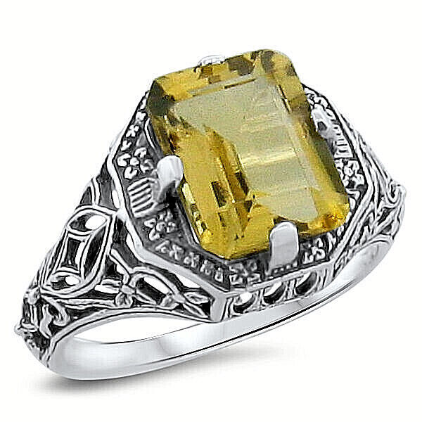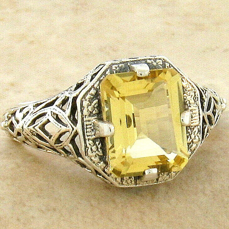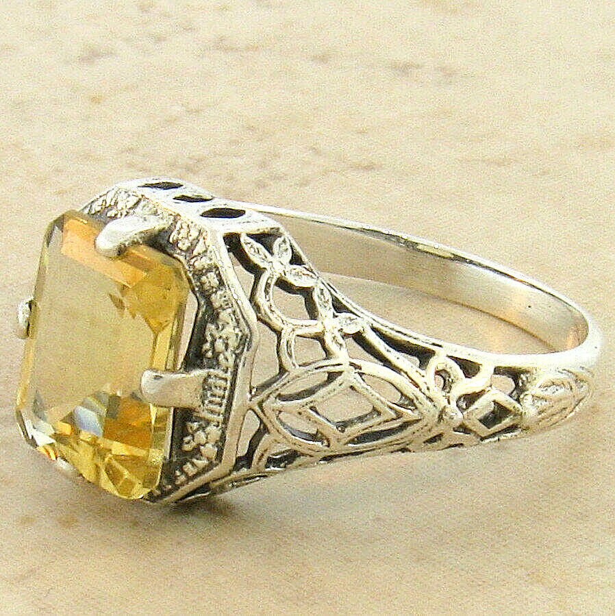 GENUINE CITRINE 925 SOLID STERLING SILVER DECO VINTAGE STYLE FILIGREE RING 196X