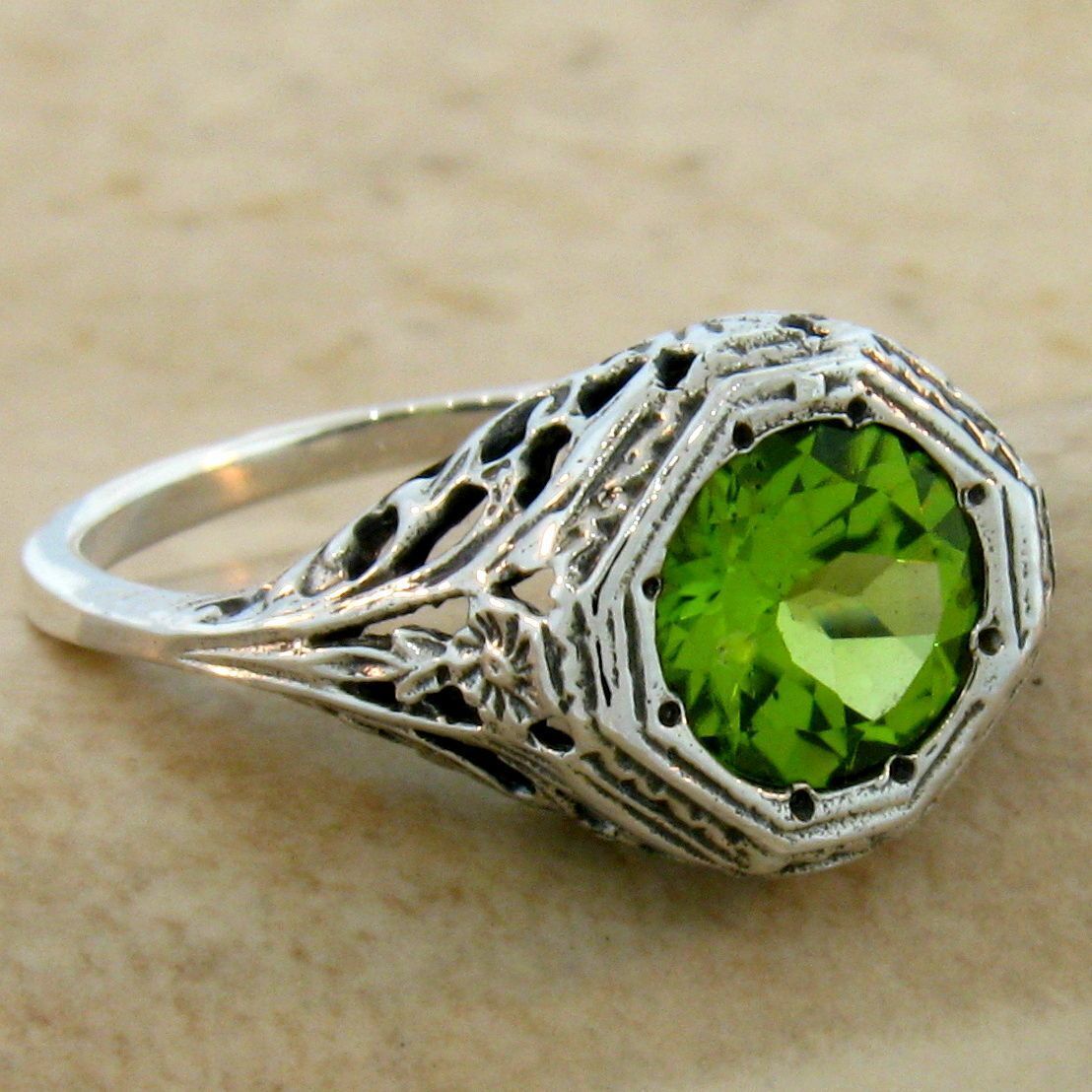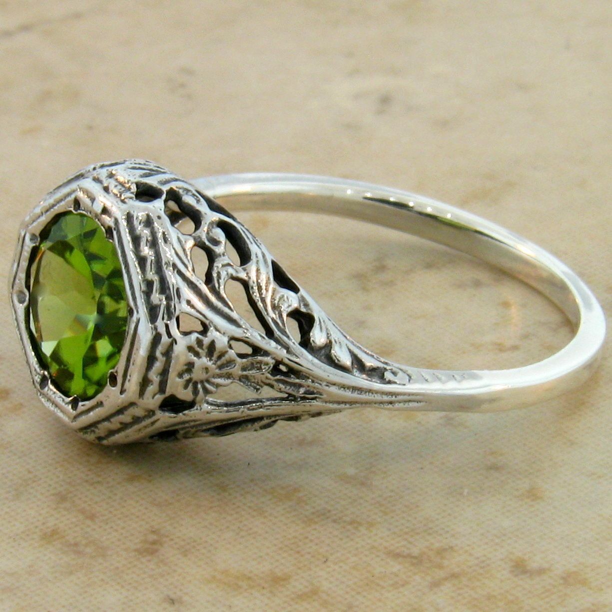 GENUINE PERIDOT CLASSIC ART DECO STYLE 925 SOLID STERLING SILVER RING 064X