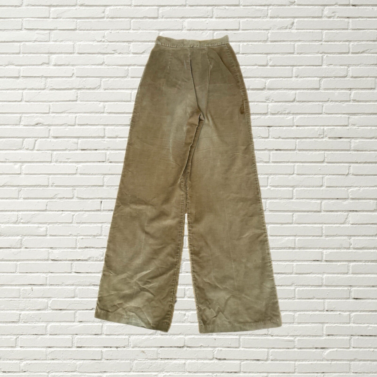 Vintage 70s Bell Bottom Pants Tan Corduroy High Rise Wide Leg Xs Hippie