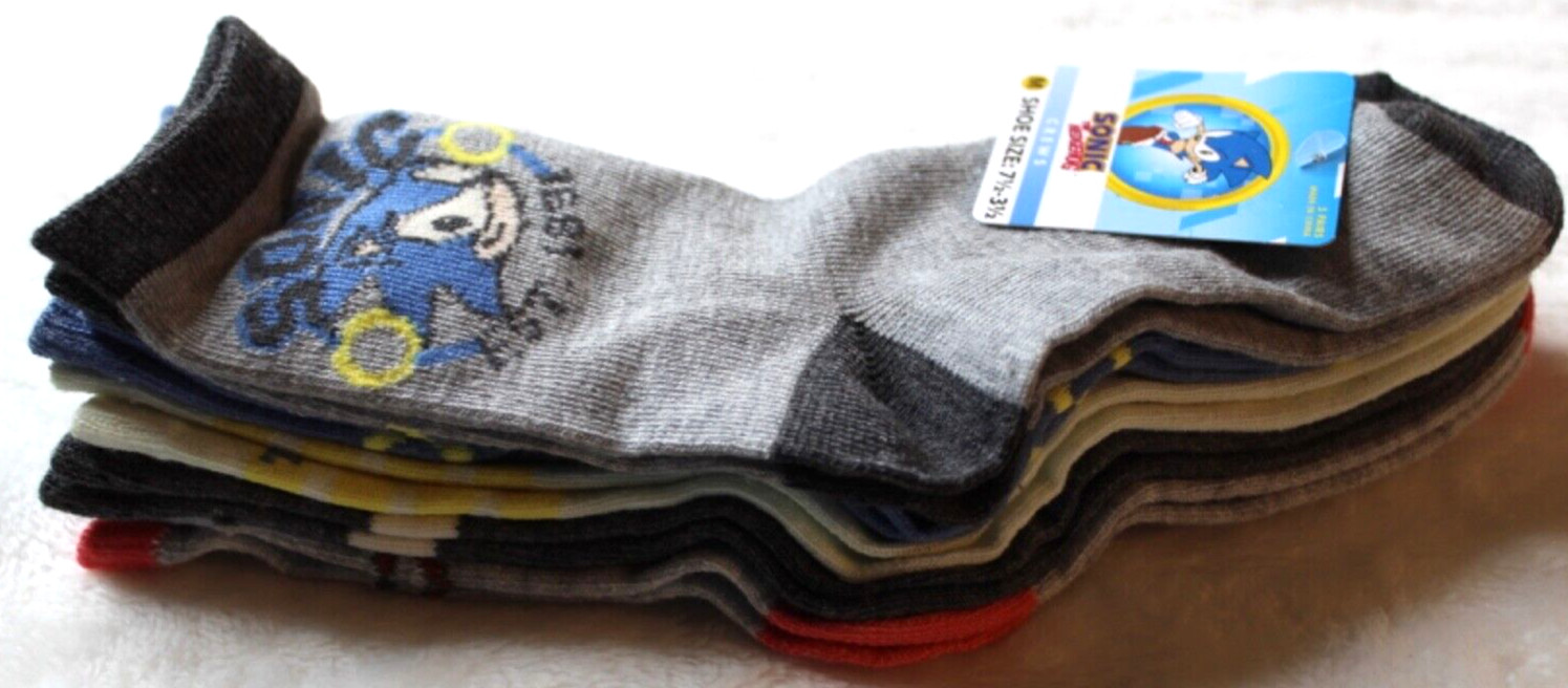 Sonic The Hedgehog Boys Crew Socks M Shoe Size 7.5-3.5 5 Pairs