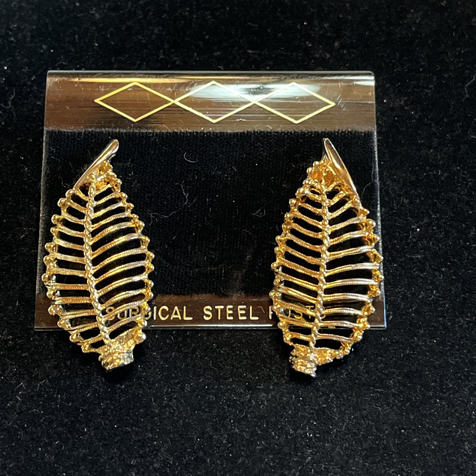 VTG Gold Tone Leaf feather Open Work dangle Pierced earrings