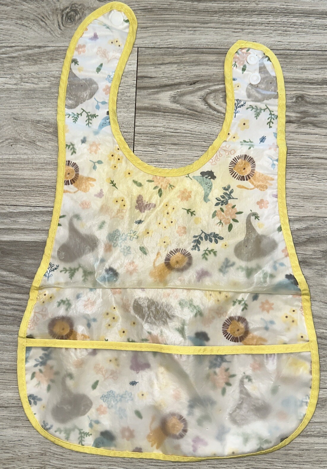 EVA Baby Bibs 8 Preowned Plastic w Staining approx 10 Snaps Crumb Food Catcher