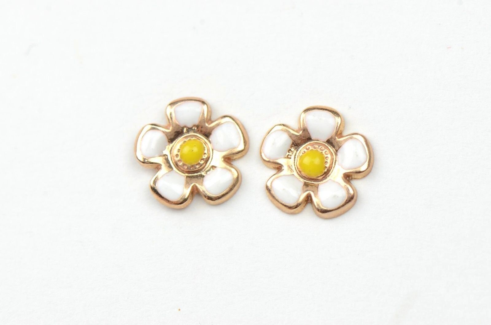 как выглядит 14k Yellow Gold Baby Enamel Flower earrings, Screw Back фото