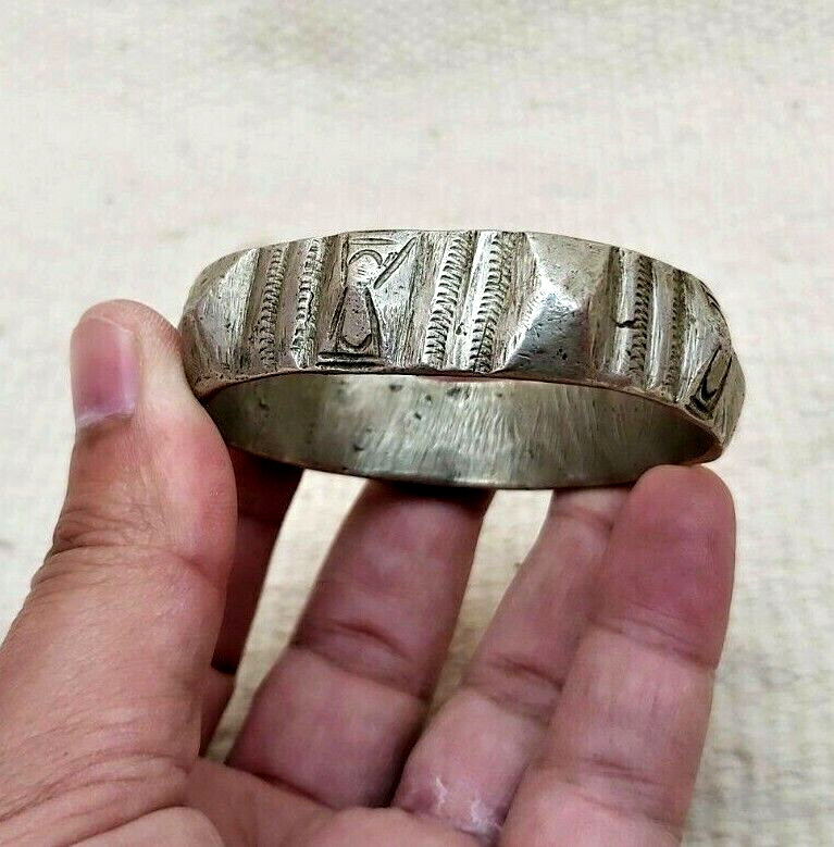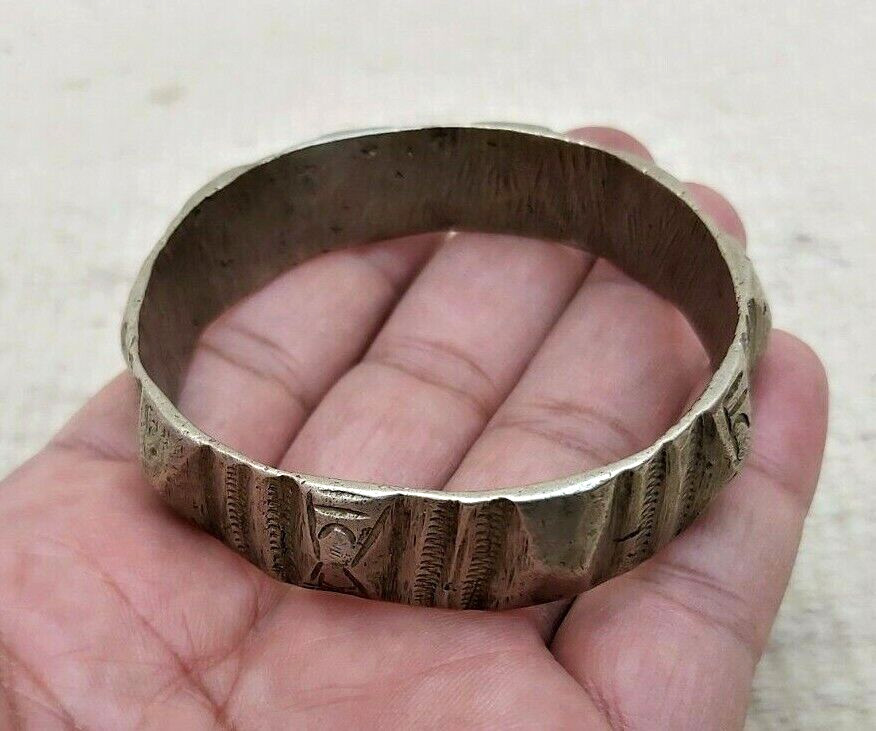 Antique African Silver Color Moroccan Berber Bracelet Tuareg Tribal Cuff Ethnic