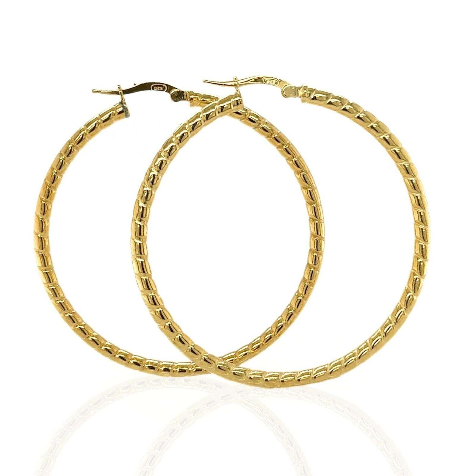 High Quality Italy 925 Sterling Silver Textured Cut Hoop Earrings All Size