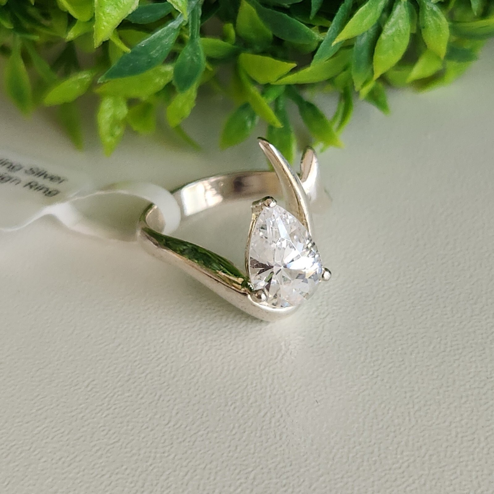 как выглядит 925 Sterling Silver Pear CZ Design Ring фото