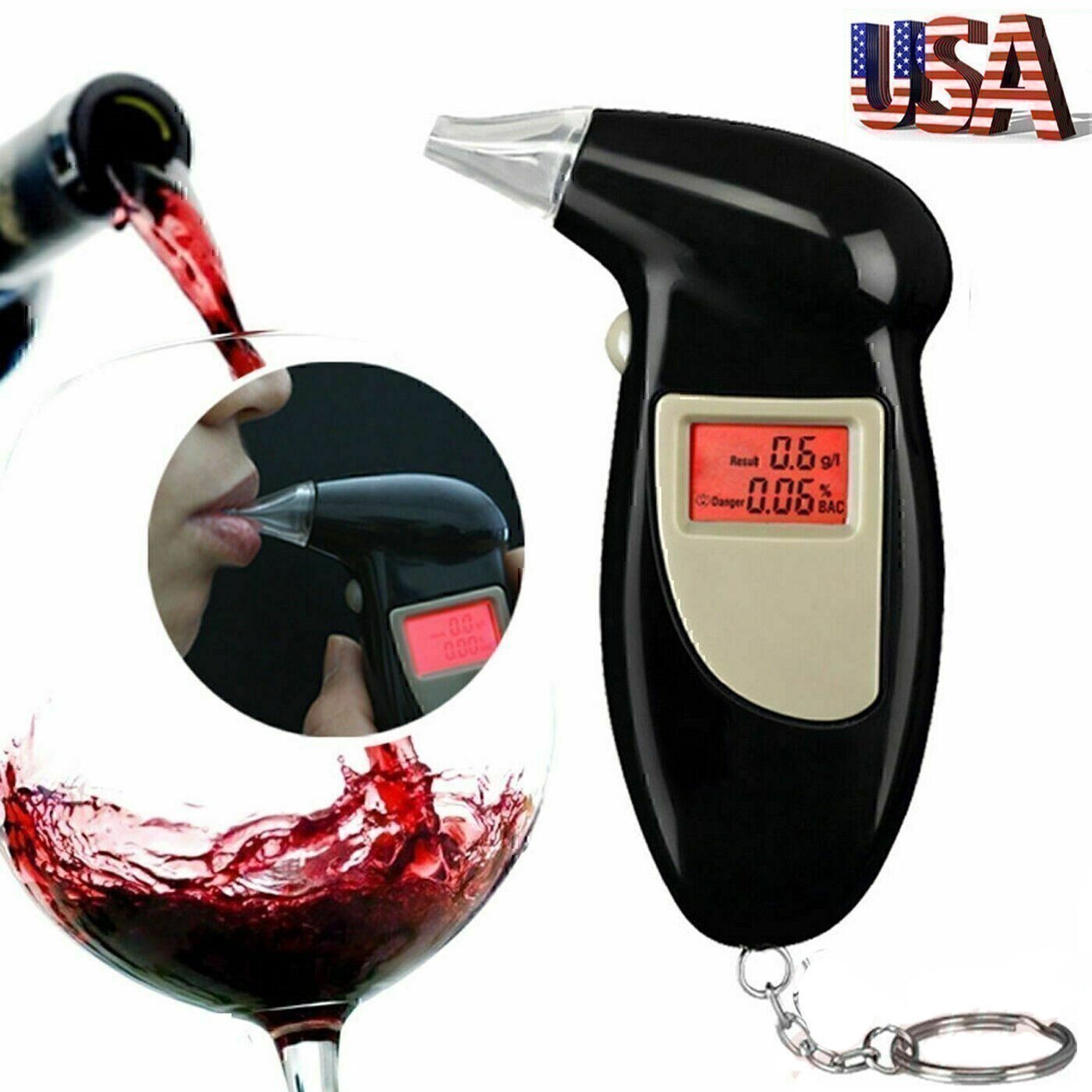 Set Black Digital LCD Police Breathalyzer Test Alcohol Tester Analyzer Detector