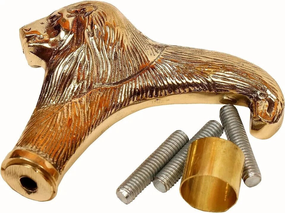 как выглядит Brass Walking Stick Handle Lion Head Vintage Gift for Men фото