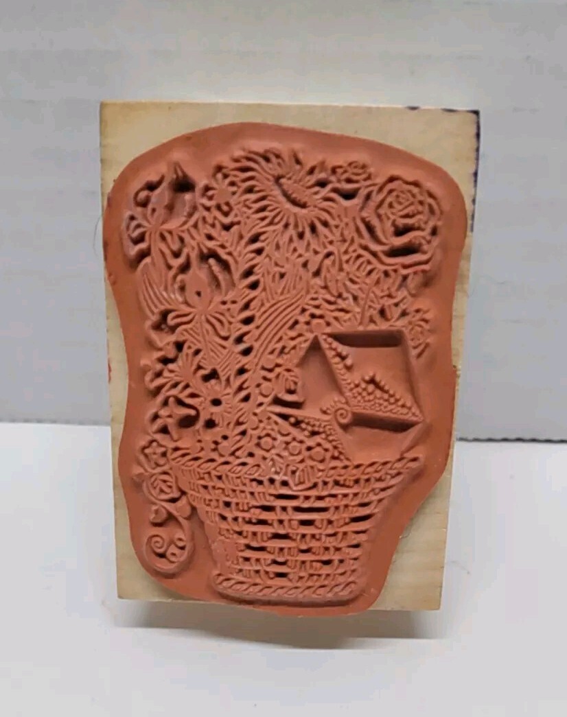 как выглядит Unbranded Rubber STamp Flowers in Basket with Note 1.5" x 2.25" фото