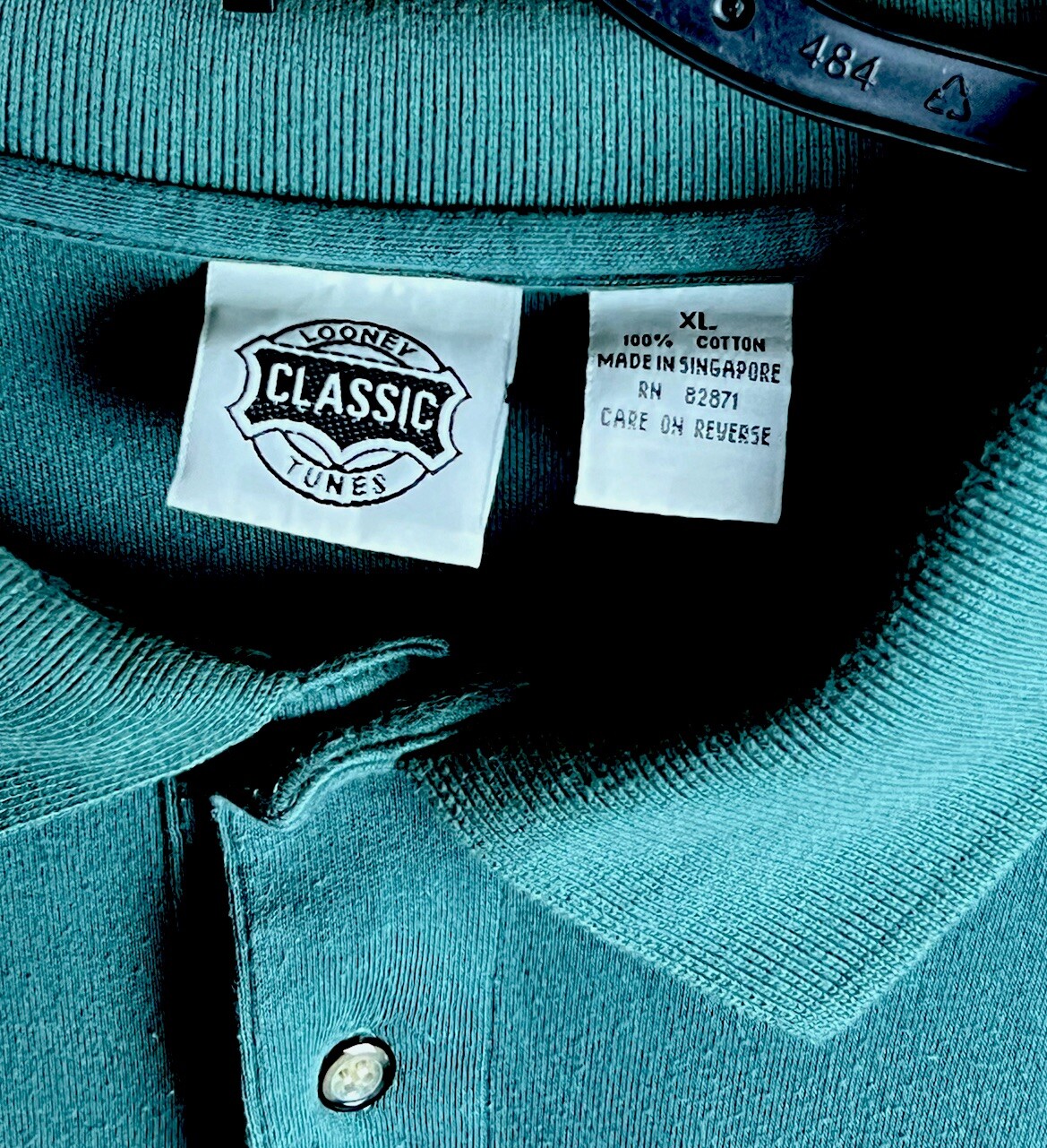 VTG 1995 Tasmanian Devil Looney Tunes Classic Green Long Sleeve Polo B2G1FREE