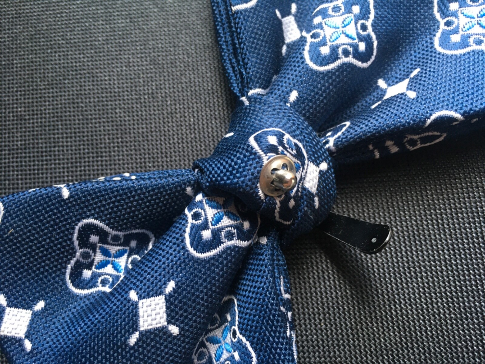как выглядит Vintage Jumbo Butterfly Bowtie single metal snap clip blue white on navy фото