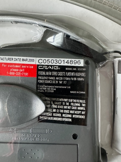 Craig AM/FM Stereo Radio Cassette Player w Headphones CS2301 New Factory Sealed