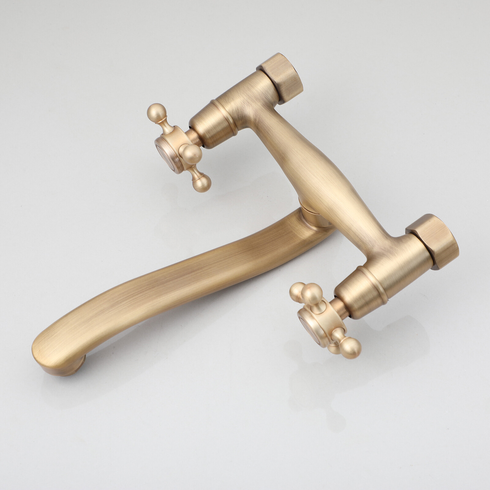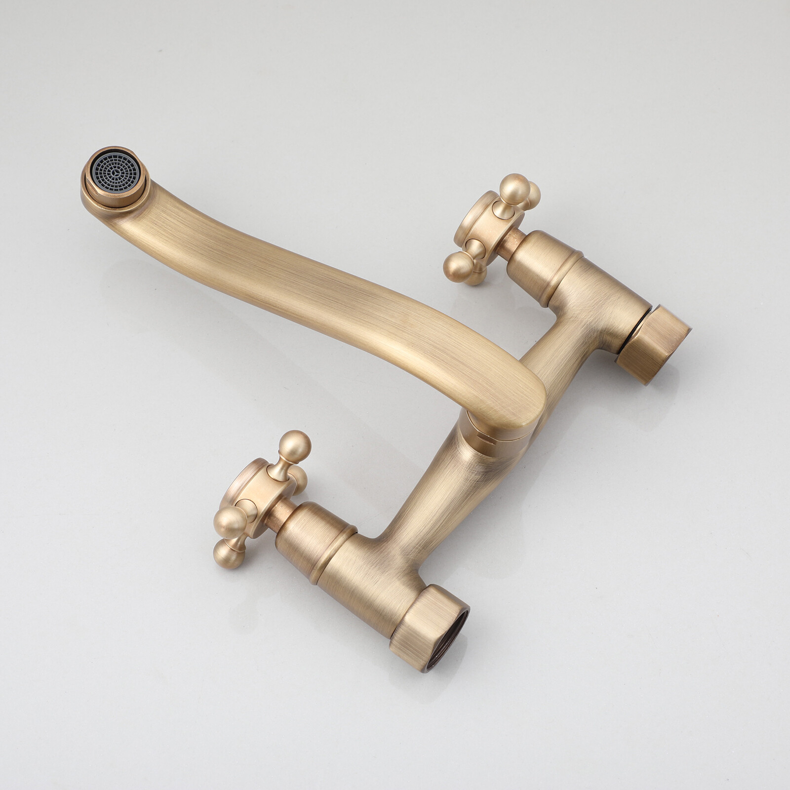 как выглядит Antique Brass Bathroom Sink Faucet Mixer Wall Mount Brass Dual Handles Holes Tap фото