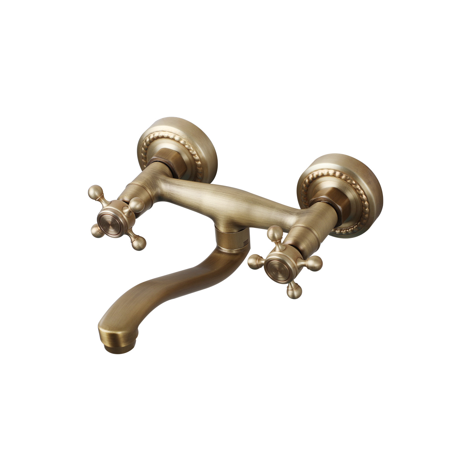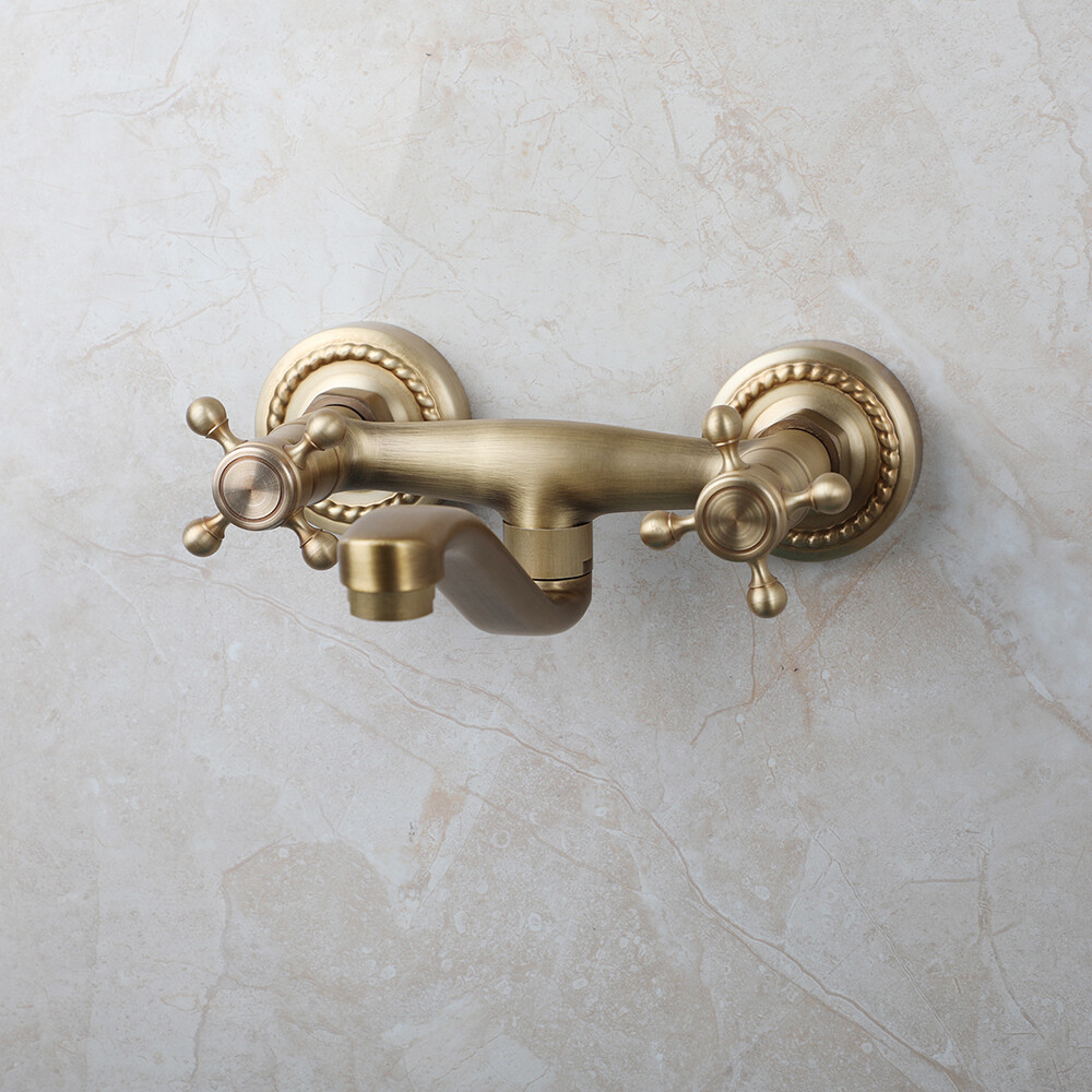 Antique Brass Bathroom Sink Faucet Mixer Wall Mount Brass Dual Handles Holes Tap