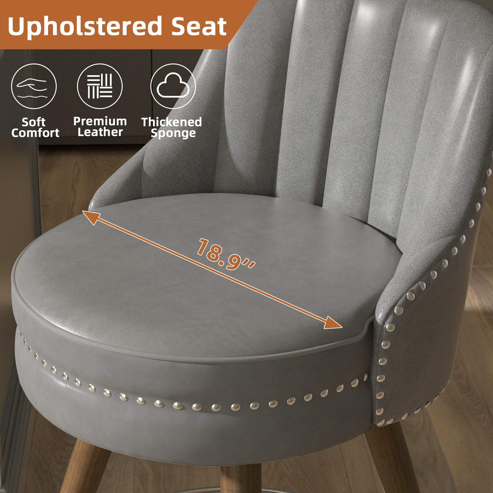 24 Swivel Bar Stools Set of 2 Counter Height Bar Stools PU Kitchen Bar Chairs