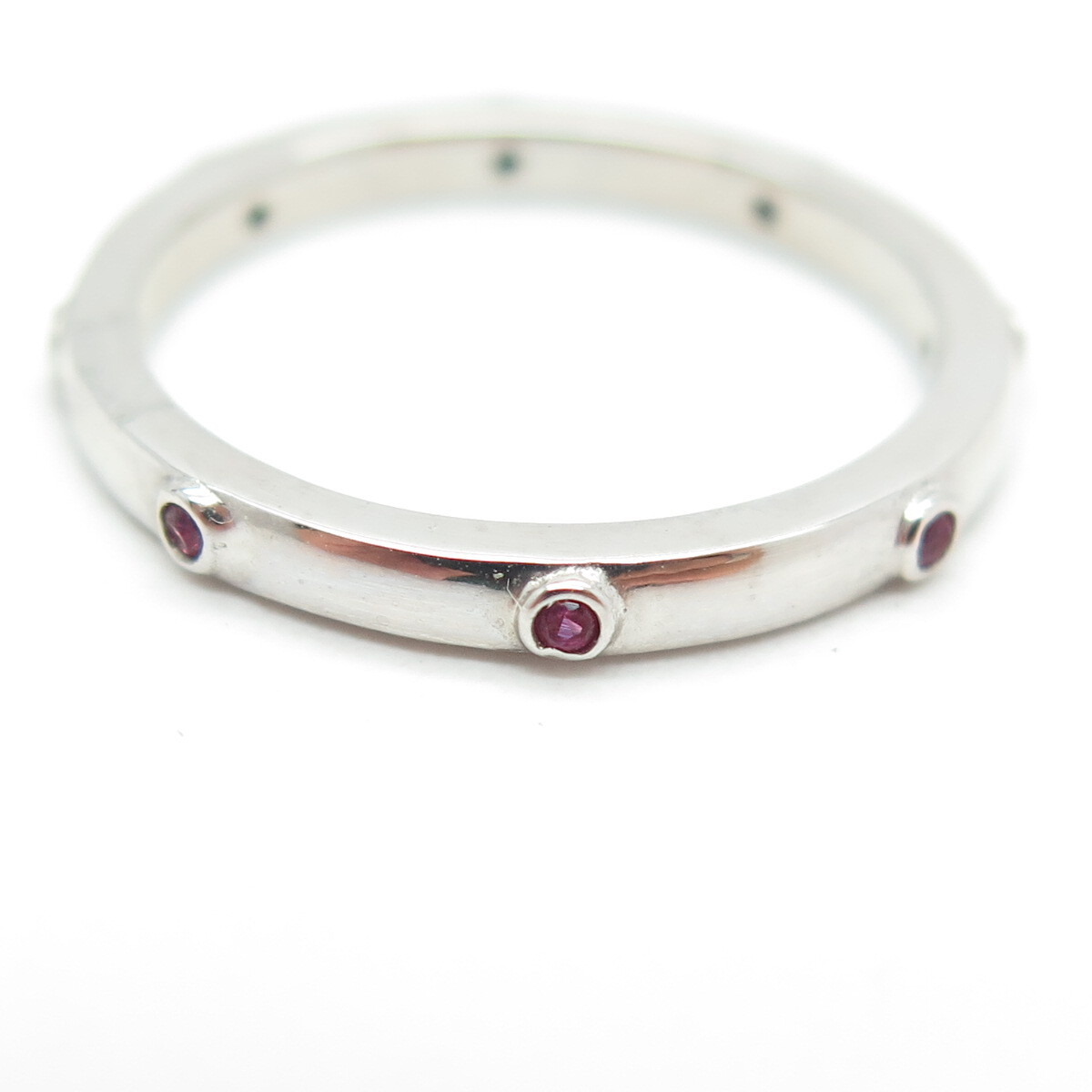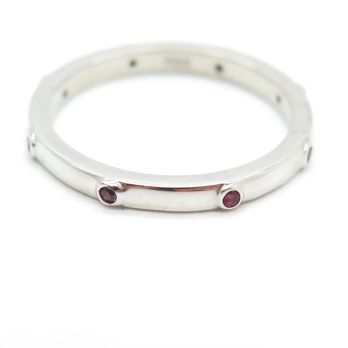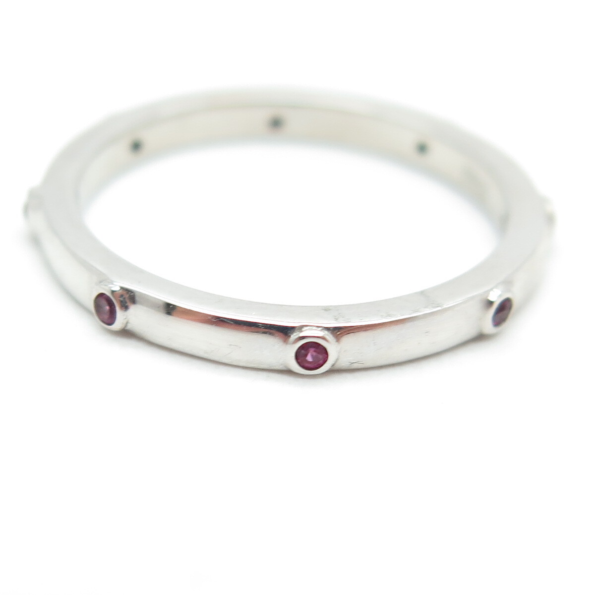 925 Sterling Silver Round Lab-Created Pink Sapphire Stackable Band Ring Size 7