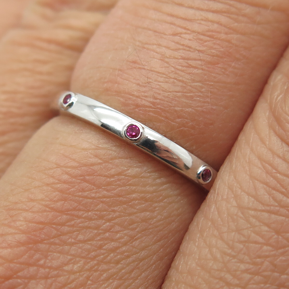 как выглядит 925 Sterling Silver Round Lab-Created Pink Sapphire Stackable Band Ring Size 7 фото