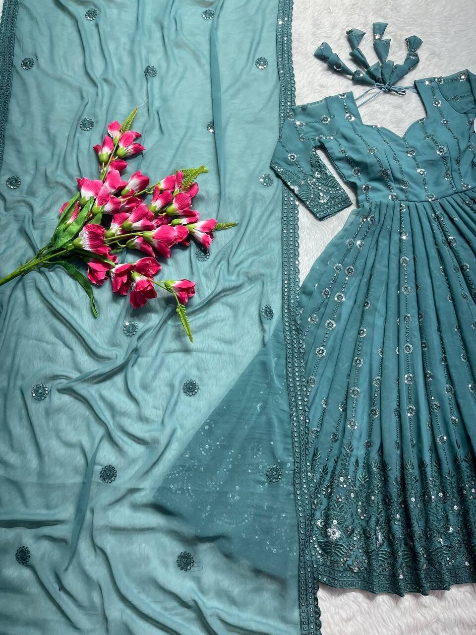 NEW LAUNCHING FAUX GEORGETTE GOWN WITH BOTTOM AND DUPATTA FOR FESTIVAL WEAR