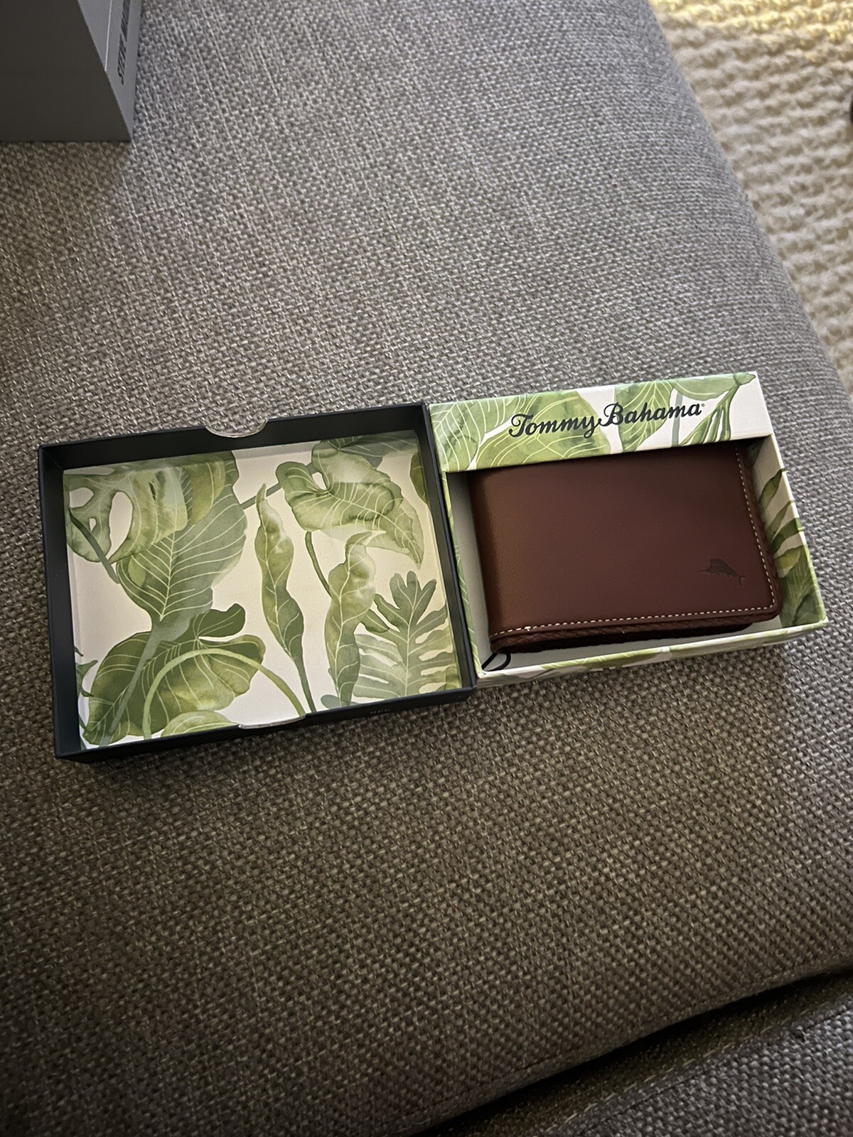 как выглядит Tommy Bahama Mens Bi Fold Tan Leather Wallet Card Case Brown Marlin Emboss NIB фото