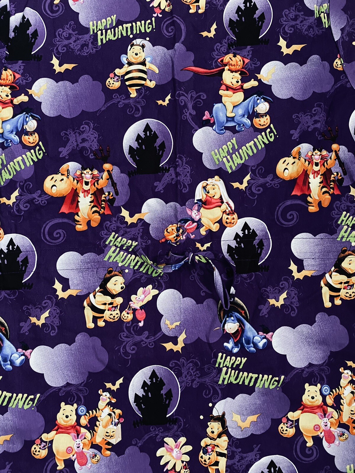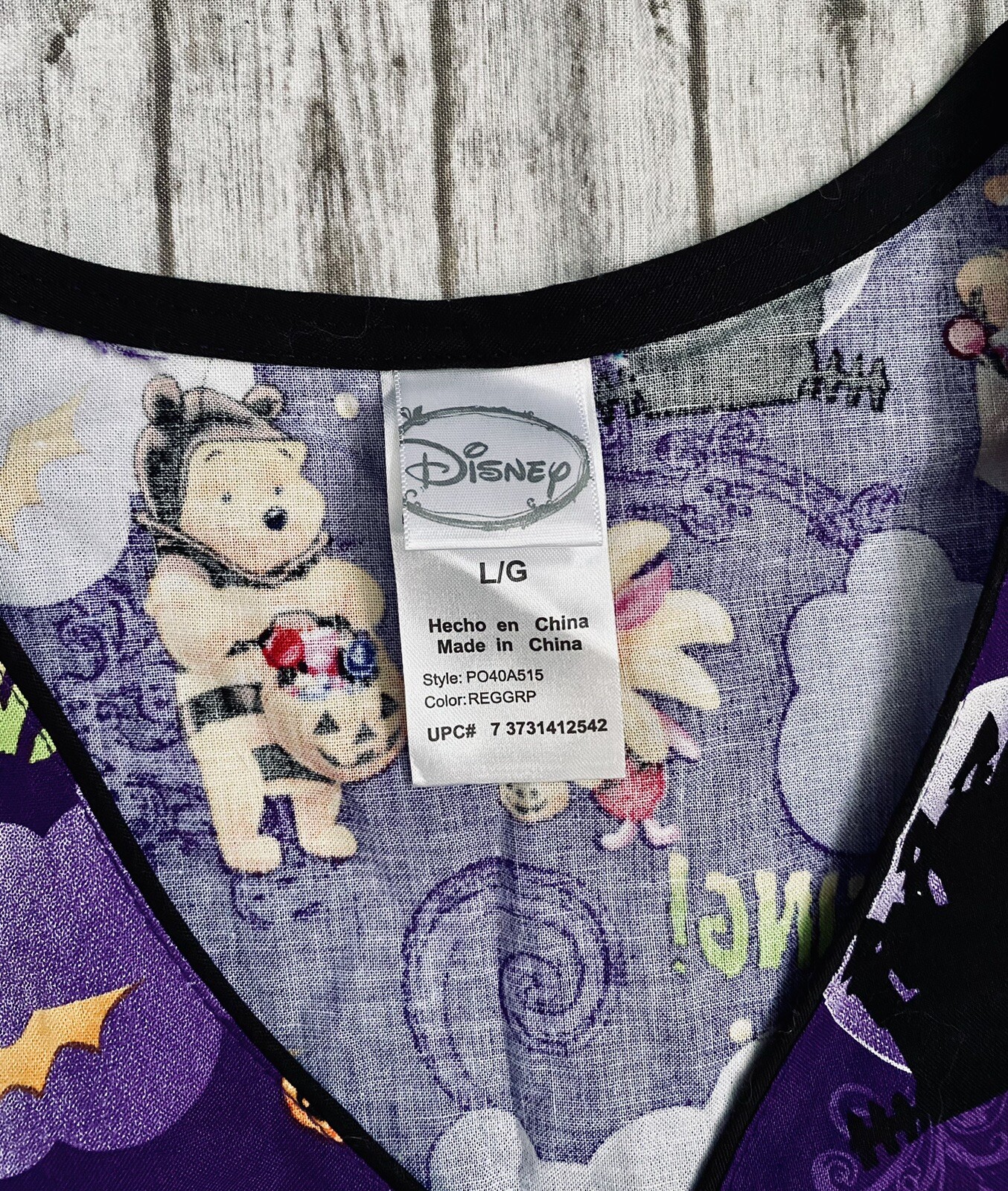 как выглядит Disney Pooh Friends Scrub Top Size L Happy Haunting Halloween Purple фото