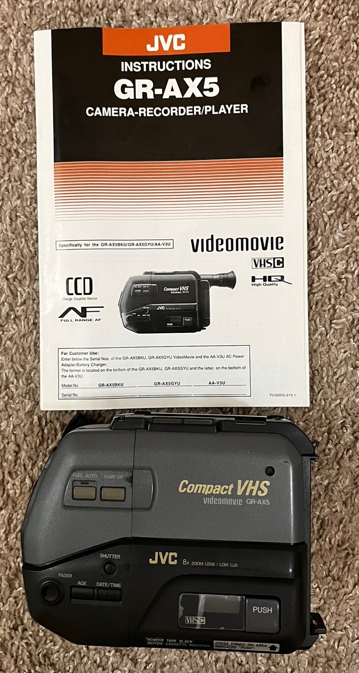 VINTAGE JVC Compact VHS Lot GR-AX5 GR-324 Manuals Battery Charger Cords. As IS