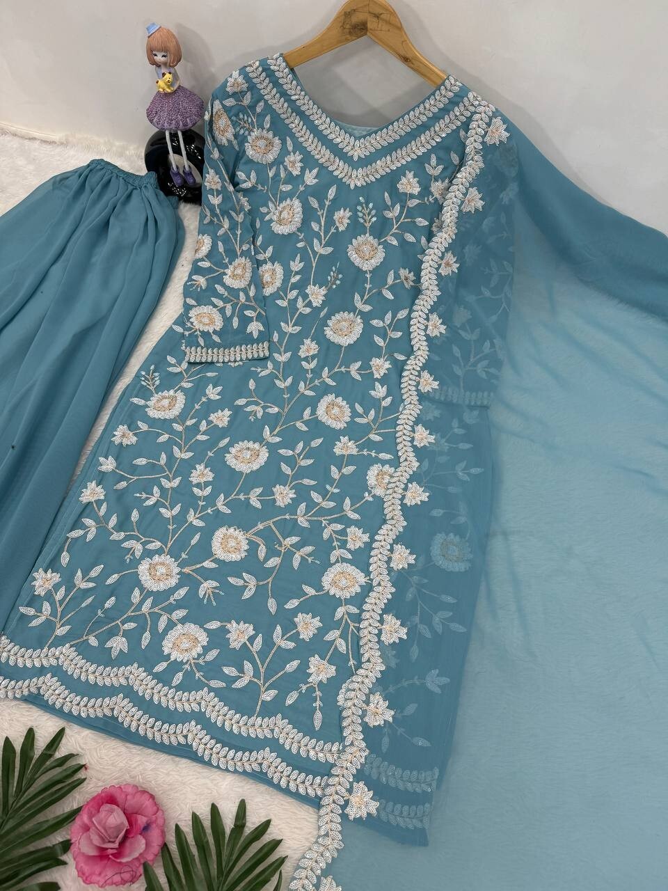 как выглядит NEW PRESENTING FAUX GEORGETTE KURTA PALAZZO WITH DUPATTA FOR FUNCTION WEAR фото