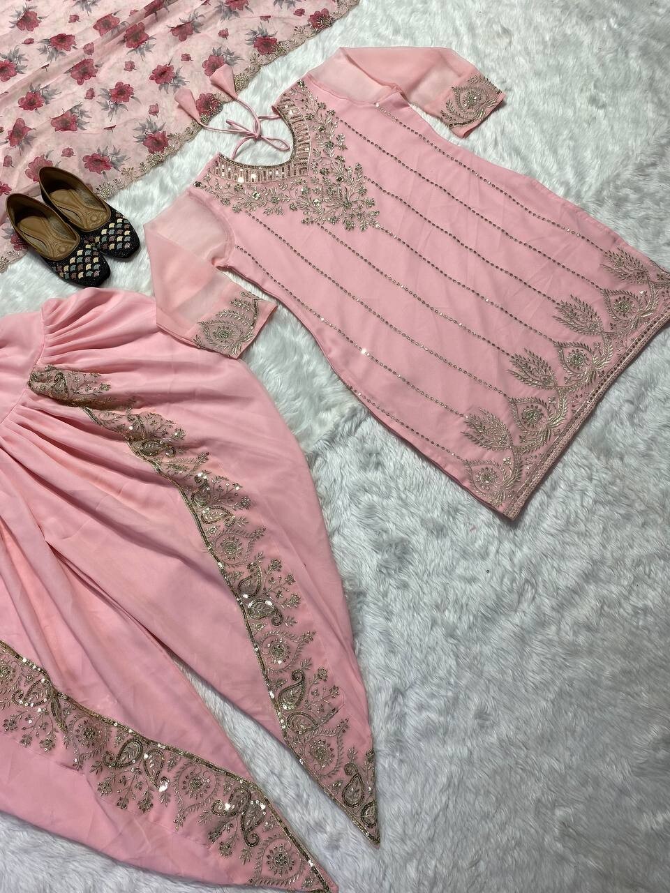 PARTY WEAR DESIGNER GEORETTE TOP DHOTI AND DUPATTA FOR WOMEN AND GIRLS