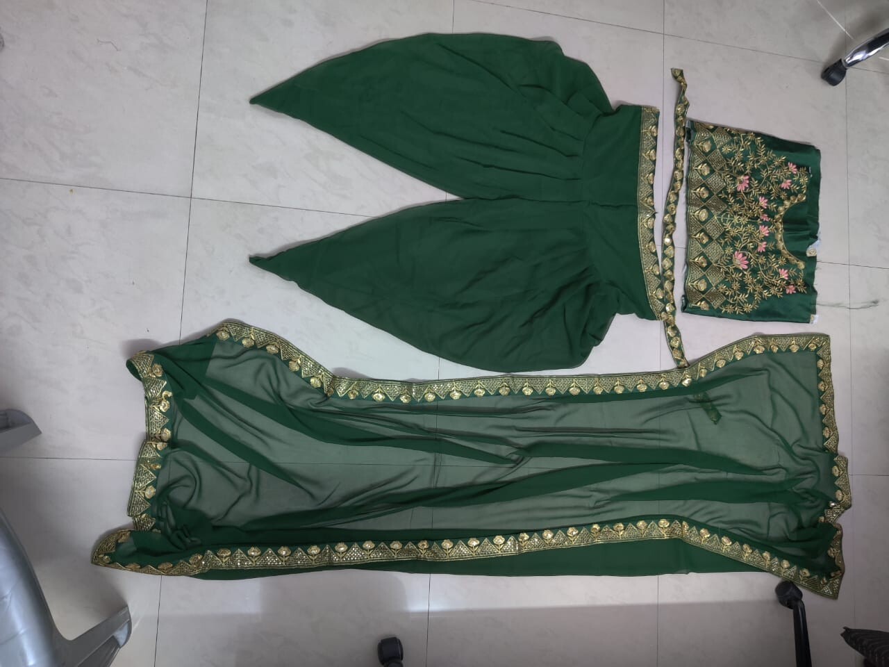 как выглядит GREEN PARTY LOOK GEORGETTE BLOUSE DHOTI WITH DUPATTA FOR WOMEN WEAR фото