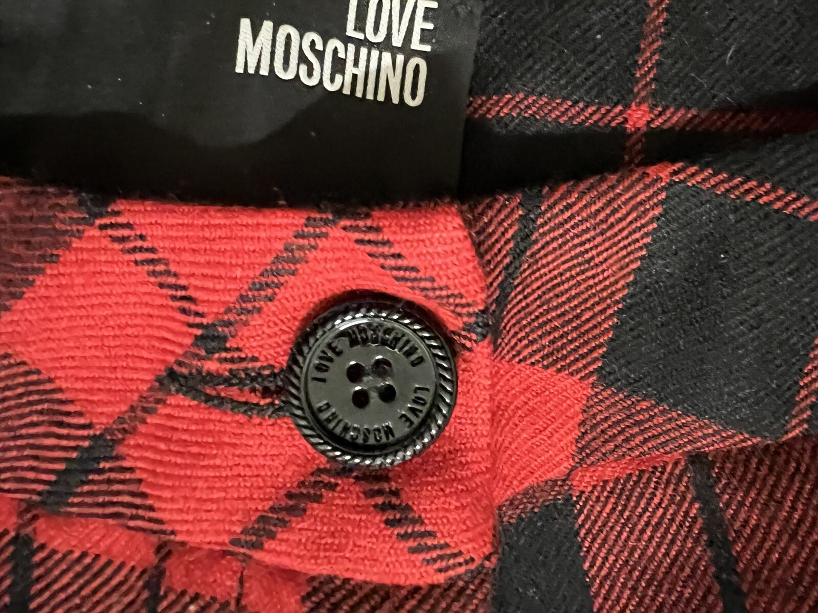как выглядит LOVE MOSCHINO RED/BLACK PLAID CUFF PANTS NEW W/O TAG HIGH STYLE FREE SHIPPING фото