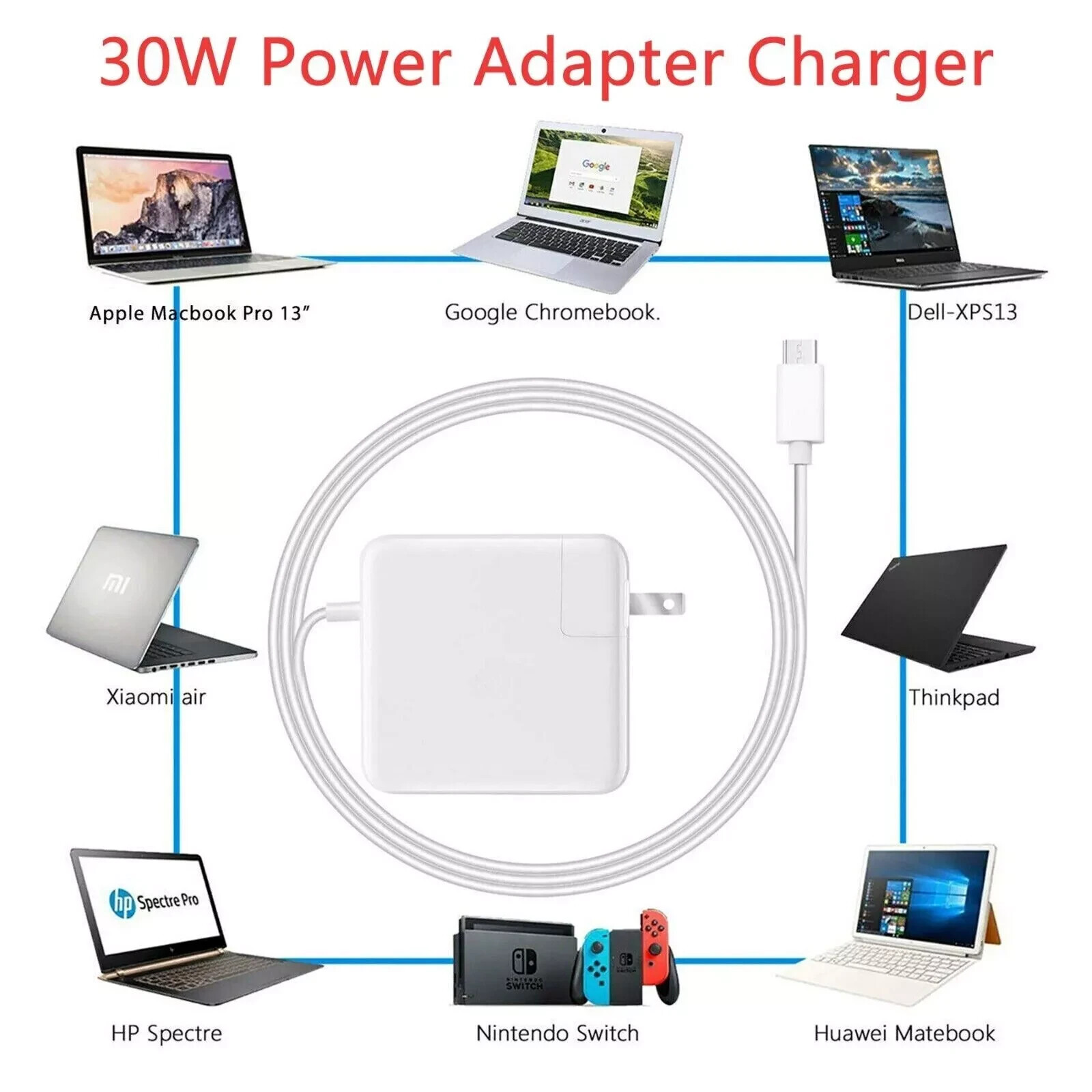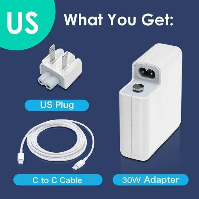 как выглядит 30W Power Adapter Charger USB-C Cable For Apple Macbook iPhone ipad pro A1534 US фото