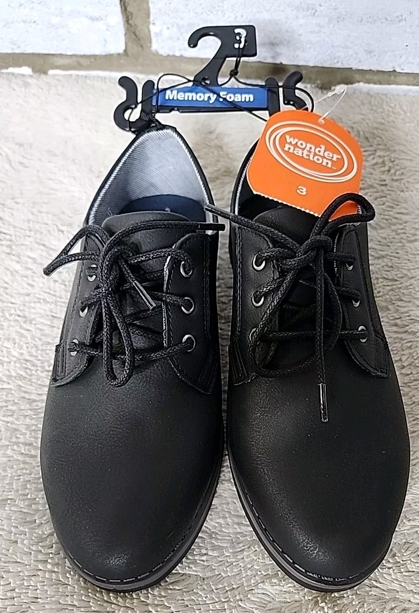 NWT Boys Wonder Nation Size 3 Memory Foam Black Casual Oxford Shoes