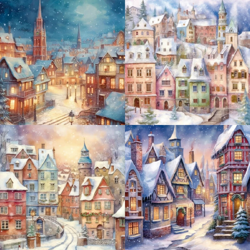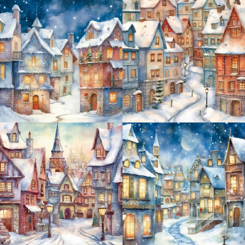 Christmas Winter Snowy Buildings Town Scrapbook Card Craft Cardstock Paper