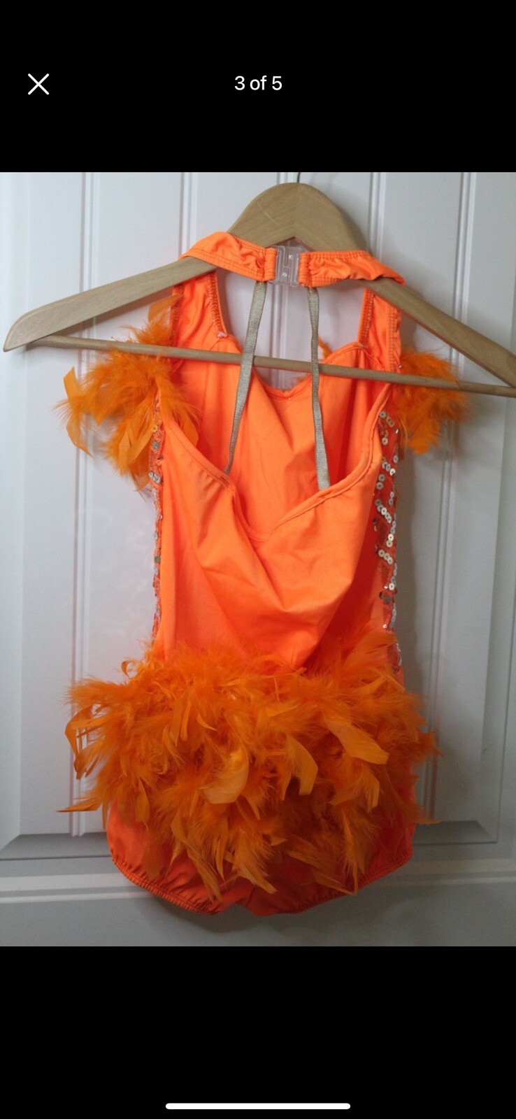 Danceco Orange Sequence, Child s Large Jazz Costume W/ Attachable Boa