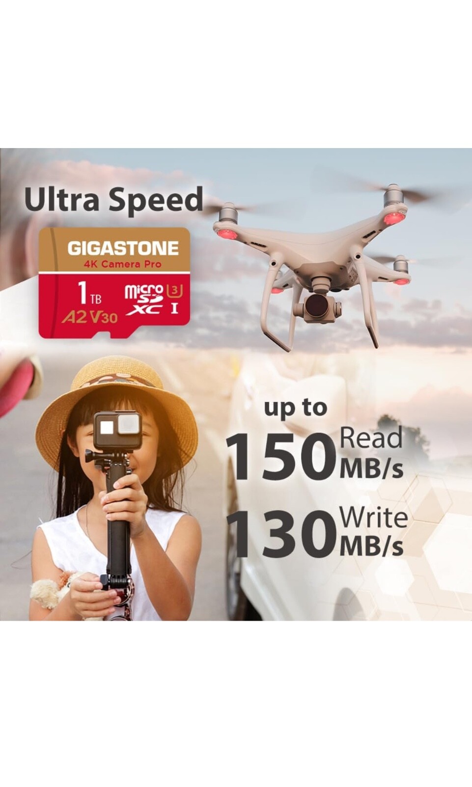 Gigastone 1TB Micro SD Card, 4K Camera Pro, R/W up to 150/130 MB/s, 4K Video Rec