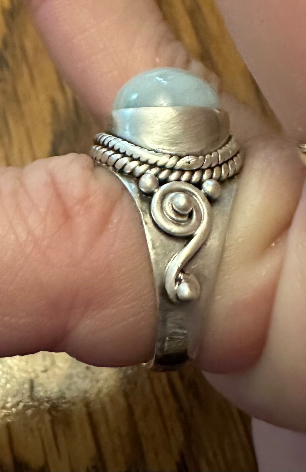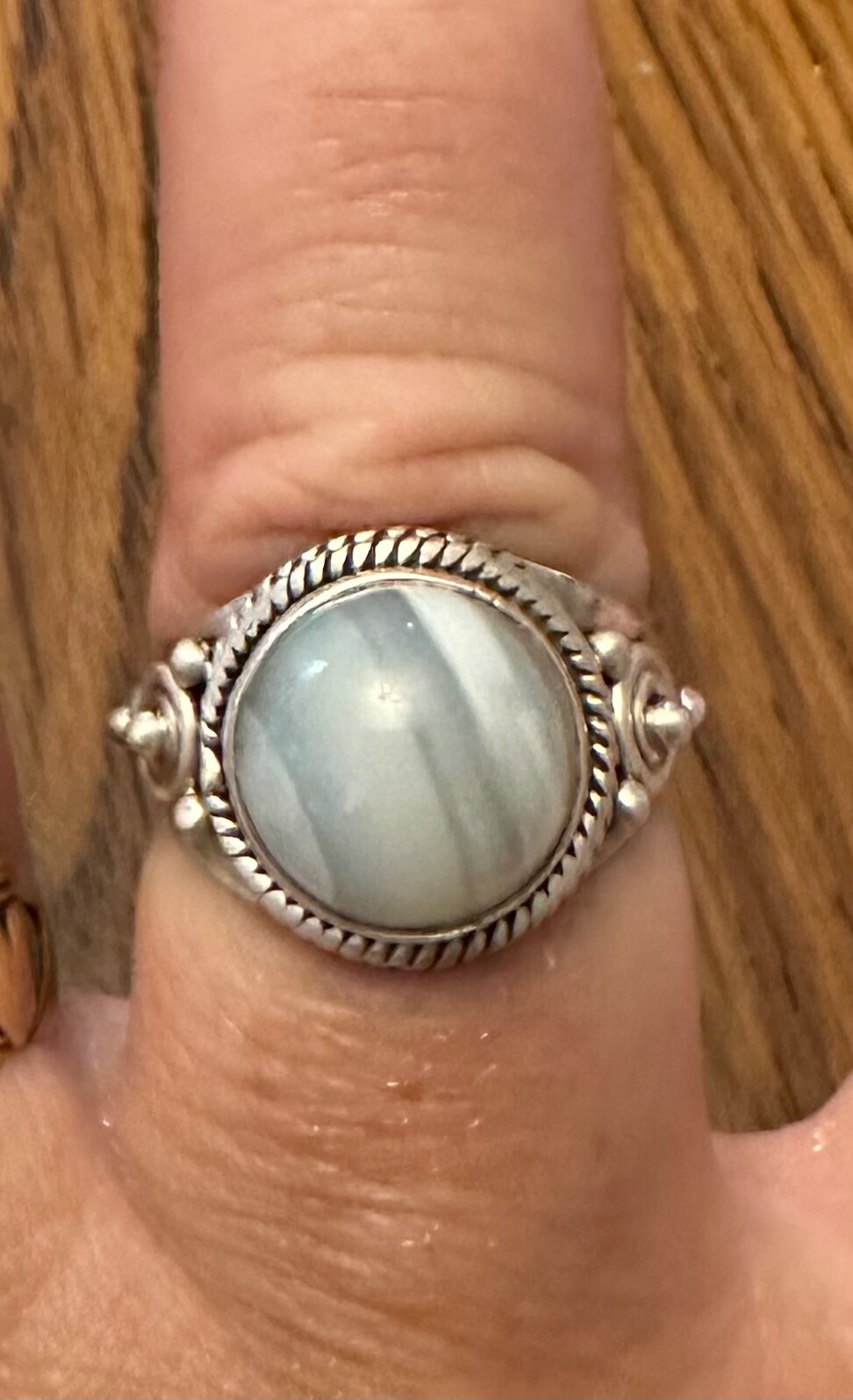 как выглядит Ring In Sterling Silver , Blue Agate Stone Ring ,size 6.5 фото