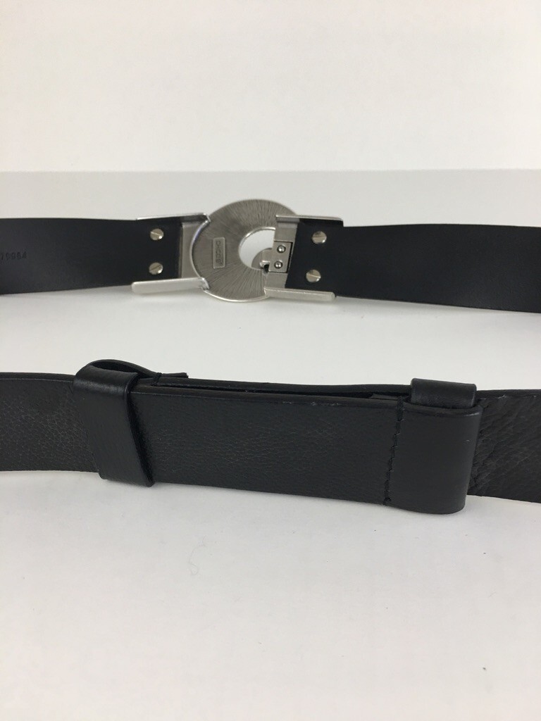 как выглядит Chico s M/L Black Genuine Leather Circle Silvertone Clasp Adjustable Belt фото