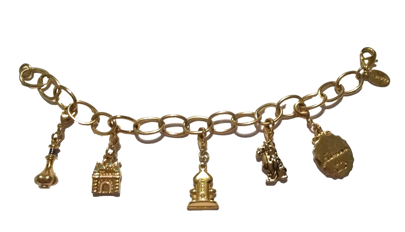 как выглядит Disney COMPLETE 5 CHARM Aladdin JASMINE Gold Tone Charm Bracelet Enameled Charms фото