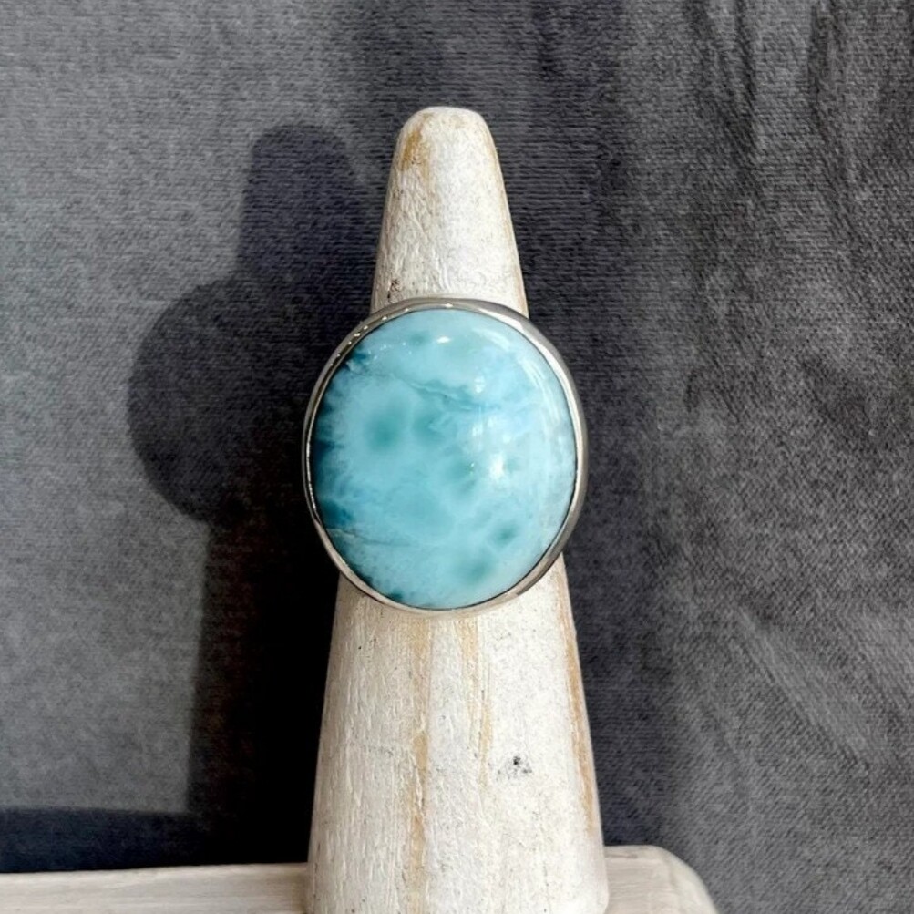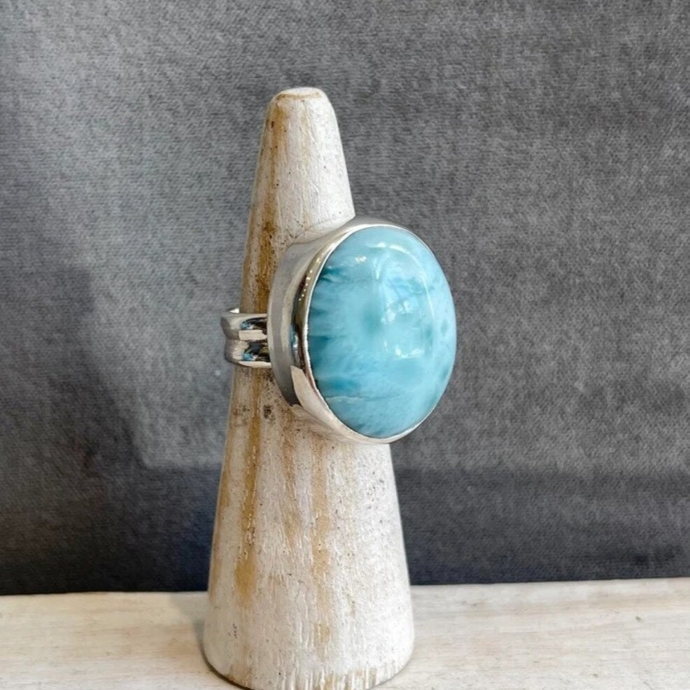 Larimar gemstone 925 Sterling Silver Ring Statement Handmade designer Ring