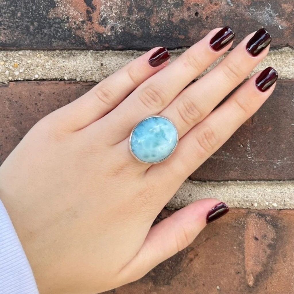 как выглядит Larimar gemstone 925 Sterling Silver Ring Statement Handmade designer Ring фото