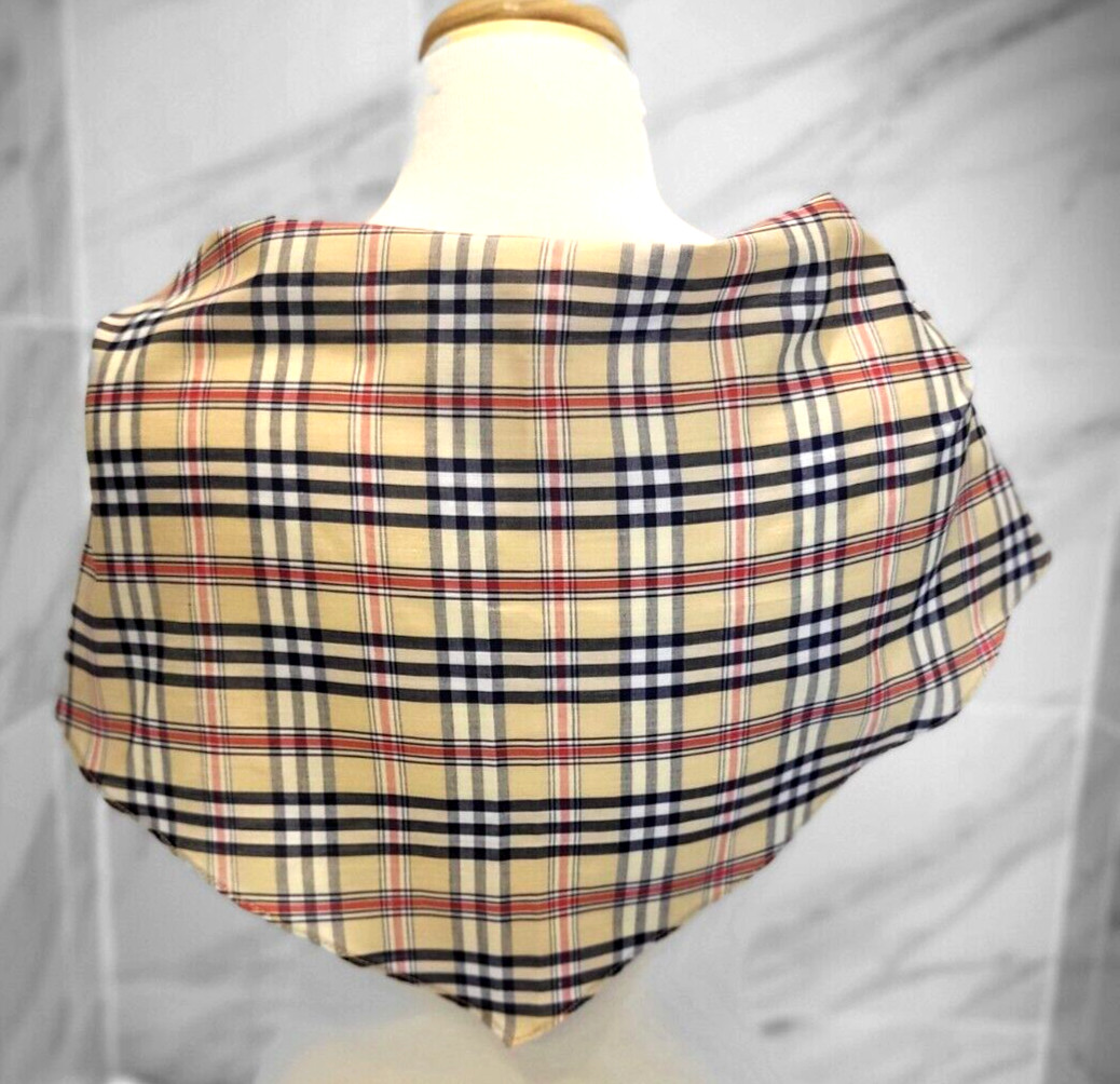 как выглядит Vintage Retro Red Cream Blue Plaid Triangle Scarf Cotton 53x13.5" Pristine YK фото